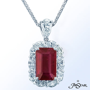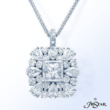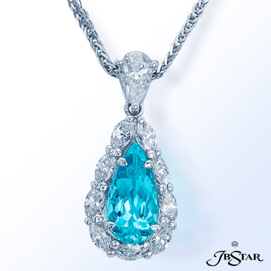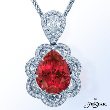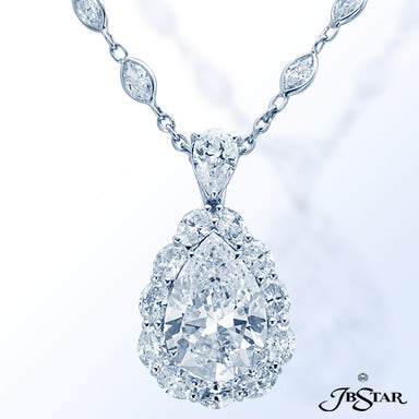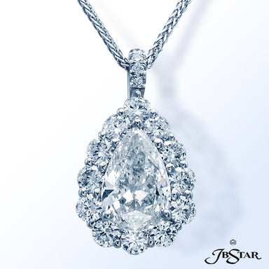 JB STAR DIAMOND PENDANT FEATURING A 7.636 CT PEAR SHAPE DIAMOND ENCIRCLED BY 11 PERFECTLY MATCHED OV