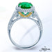 JB STAR EMERALD RING HANDCRAFTED WITH A STUNNING 2.47 CT OVAL EMERALD EMBRACED BY SHIELD SHAPE DIAMO