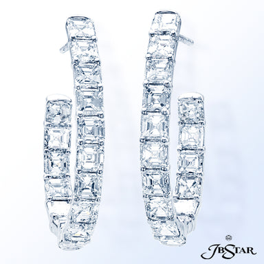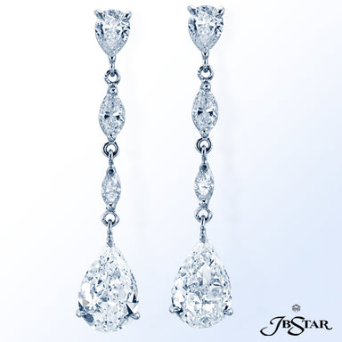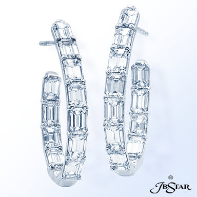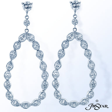 JB STAR DIAMOND HOOP EARRINGS HANDCRAFTED IN A COMBINATION OF CAREFULLY MATCHED OVAL AND PEAR-SHAPED DIAMONDS TO FORM THE PERFECT HOOP. PLATINUM DI...