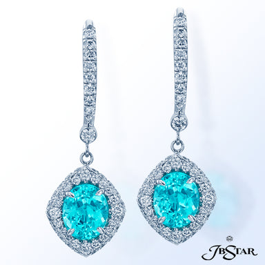JB STAR NATURAL FANCY YELLOW DIAMOND EARRINGS HANDCRAFTED WITH PRINCESS-CUT FY DIAMONDS SET IN A CENTER CHANNEL, EDGED IN MICRO PAVE. PLATINUM/18KY...