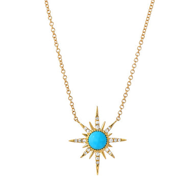 LIVEN CO14K YELLOW GOLD TURQUOISE & DIAMOND SUNBURST NECKLACE