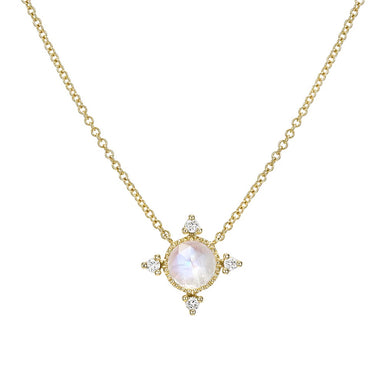 (0)14K COMPASS RAINBOW MOONSTONE AND DIAMOND NECKLACE