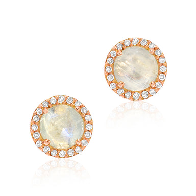 LIVEN COLIVEN CO 14K ROSE GOLD, 0.09CT DIAMOND & 0.80CT RAINBOW MOONSTONE EARRINGS