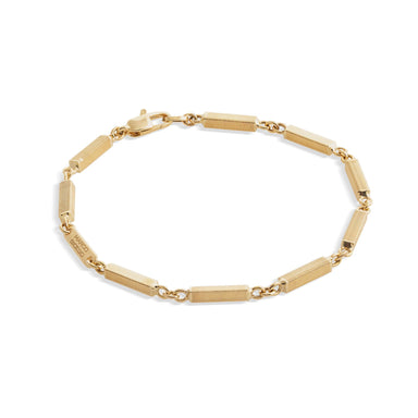 18K YELLOW GOLD LENGTH: 7 INCHES Elegant and timeless, this 18K yellow gold bracelet alternates thin chain links with oval elements with an irreg...