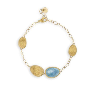 METAL: 18K YELLOW GOLD LENGTH: 6.25 INCHES STONNE: AQUAMARINE DELICATE AND CHIC, THIS 18K YELLOW GOLD BRACELET COMBINES LIGHT GOLD LEAVES WITH A ...