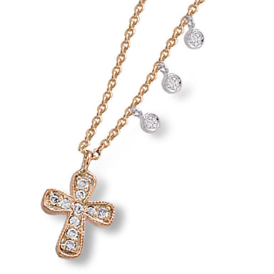 MEIRA T14K ROSE GOLD NECKLACE WITH DIAMOND PAVE DISC