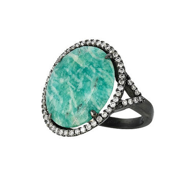 MEIRA TMeira T 14k Black Rhodium Amazonite and Diamond Cocktail Ring