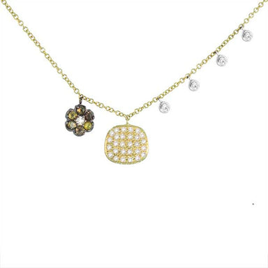Meira T 14k Flower and Pave Square Charm Necklace