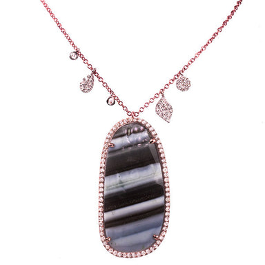 Meira T 14k Gold Stone Necklace with Off-Centered Triangle Diamonds and Charms