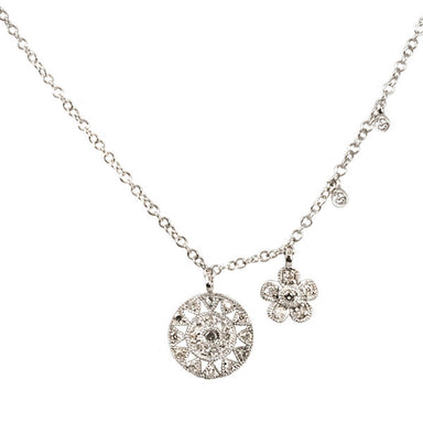 Meira T 14k Stunning White Gold Antique Charm Necklace