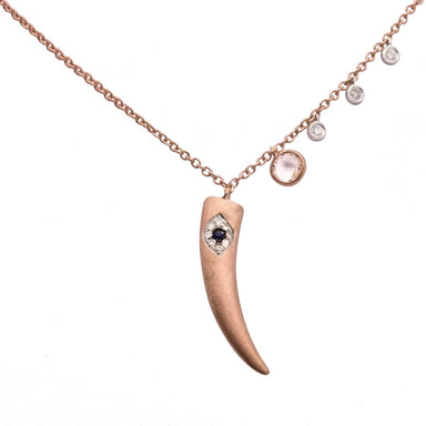 Meira T 14k Silver and Diamond Evil Eye Horn Inspired Necklace with Off-Centered Side Charms