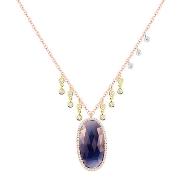 Meira T 14k Rose Gold Chalcdony Necklace with Diamond Border