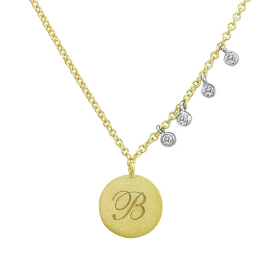 Meira T 14k Engraved Initial Disc Necklace with Diamond Bezels