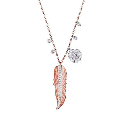Meira T 14k Rose Gold Feather Necklace with White Diamond Charms