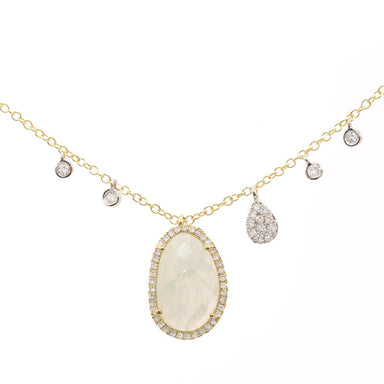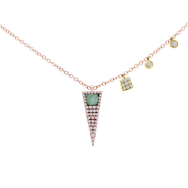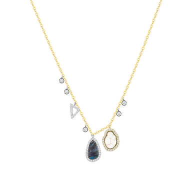 Meira T 14k Gold Stone Necklace with Off-Centered Triangle Diamonds and Charms