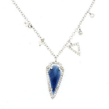 Meira T 14k Rough Cut Blue Sapphire and Diamond Slice Necklace