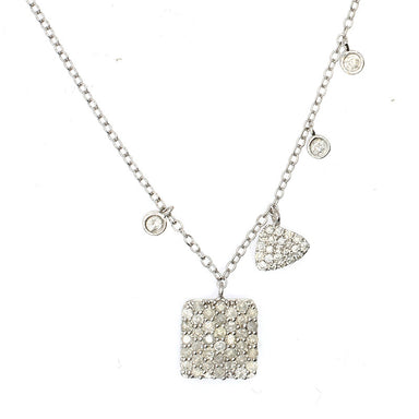 Meira T 14k White Gold Diamond and Druzy Necklace with Off-Centered Charms