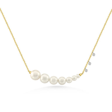 Meira T 14k MeiraT Yellow Gold Graduated Pearl Necklace with Off Centered Diamond Accent
