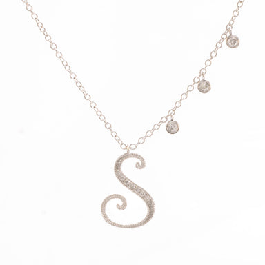 Meira T 14k White Gold Initial Necklace with Off Centered Diamond Charms