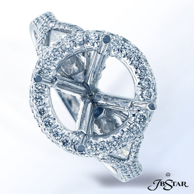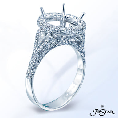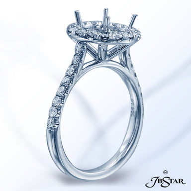 JB STAR PLATINUM DIAMOND SEMI-MOUNT HANDCRAFTED WITH KITE DIAMONDS ON THE SIDES OF ROUND HALO AND PAVE SPLIT SHANK. DIAMONDS: KITE 0.51 CT. TW.; RO...
