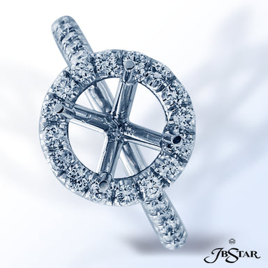 JB STAR DIAMOND AND PLATINUM SEMI-MOUNT DELICATELY HANDCRAFTED WITH A ROUND DIAMOND PAVE HALO SETTING. DIAMONDS: ROUND 0.64 CTW