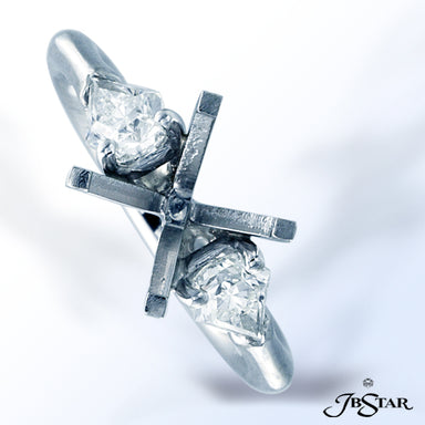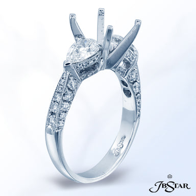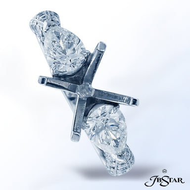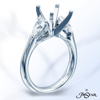 JB STAR PLATINUM DIAMOND SEMI-MOUNT HANDCRAFTED WITH 2 SPLENDID PEAR SHAPE DIAMONDS AND 3-SIDED PAVE WITH MILLEGRAIN EDGE. DIAMONDS: PEAR 0.95 CT. ...