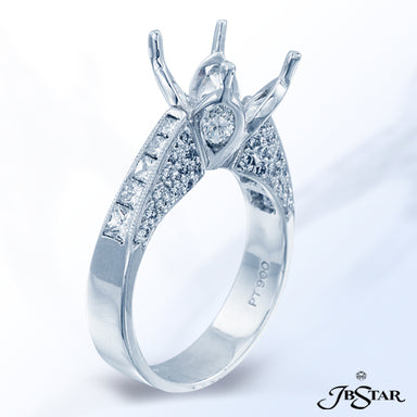 JB STAR PLATINUM DIAMOND SEMI-MOUNT UNIQUELY DESIGNED WITH 4 MARQUISE DIAMONDS EMBRACING THE PRONG SETTING AND PRINCESS-CUT DIAMONDS AND MICRO PAVE...
