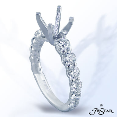 JB STAR PLATINUM DIAMOND SEMI-MOUNT IN A STUNNING DESIGN OF 8 GRADUATED BRILLIANT ROUND DIAMONDS IN A SHARED-PRONG SETTING ON A DELICATELY DESIGNED...