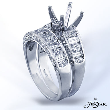 JB STAR PLATINUM DIAMOND SEMI-MOUNT HANDCRAFTED WITH BAGUETTES AND PAVE. DIAMONDS: BAGUETTES: 1.32 CT. TW.; ROUND : .78 CT. TW.