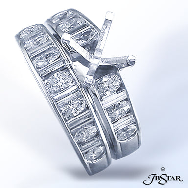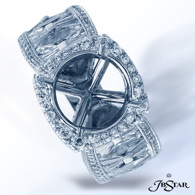 JB STAR PLATINUM DIAMOND SEMI-MOUNT HANDCRAFTED WITH 10 STRAIGHT BAGUETTES AND ROUND PAVE DIAMONDS DIAMONDS: STRAIGHT BAGUETTE 1.01CTW; ROUND 0.50CTW