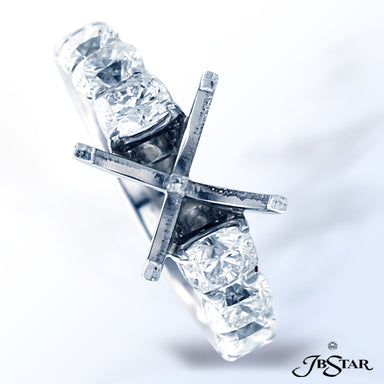 JB STAR BEAUTIFUL PLATINUM SEMI-MOUNT WITH 8 CUSHION-CUT DIAMONDS IN A SHARED PRONG SETTING. DIAMONDS: CUSHION 2.71 CTW