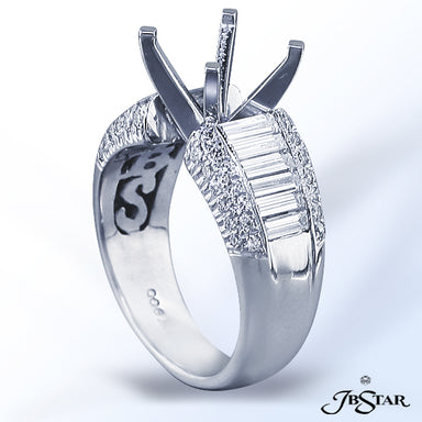 JB STAR PLATINUM DIAMOND SEMI-MOUNT HANDCRAFTED WITH BAGUETTES AND PAVE. DIAMONDS: BAGUETTES: 1.15 CT. TW.; ROUND: .40 CT. TW.