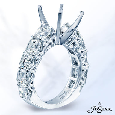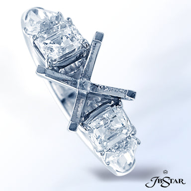 JB STAR ELEGANTLY STYLED THIS PLATINUM SEMI-MOUNT FEATURES PERFECTLY MATCHED SQUARE-EMERALD-CUT AND KITE DIAMONDS FOR A SETTING THAT STANDS OUT IN ...