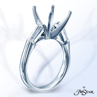 JB STAR DIAMOND SEMI-MOUNT WITH TAPERED BAGUETTE DIAMONDS EMBRACING THE CENTER PRONG SETTING, HANDCRAFTED IN PLATINUM. DIAMONDS: BAGUETTE 0.68 CTW