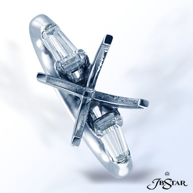 JB STAR PLATINUM DIAMOND SEMI-MOUNT WITH CAREFULLY MATCHED MARQUISE AND BAGUETTE DIAMONDS IN CHANNEL SETTING WITH MICRO PAVE PROFILE. FEATURED WITH...
