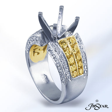 JB STAR PLATINUM DIAMOND SEMI-MOUNT HANDCRAFTED WITH TWO CENTER ROWS OF NATURAL FANCY YELLOW ROUND DIAMONDS IN 18KY CHANNEL SETTING EDGED IN PAVE. ...