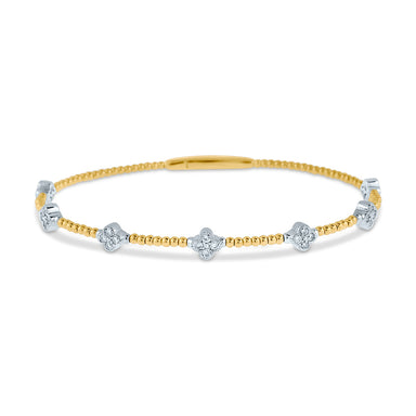MULLOYS PRIVE'PRIVE 14K YELLOW/WHITE GOLD 0.44CT DIAMOND QUATRAFOIL BEAD BANGLE