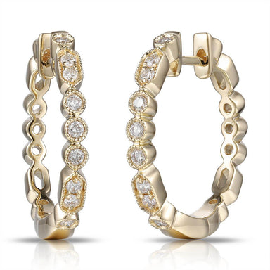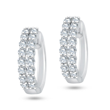 18KT Gold Double Row Diamond Hoop Earrings Diamond Weight: 0.75ct Color: F-G Clarity: VS1 Available To Order In White , Rose And Yellow Gold or Pla...