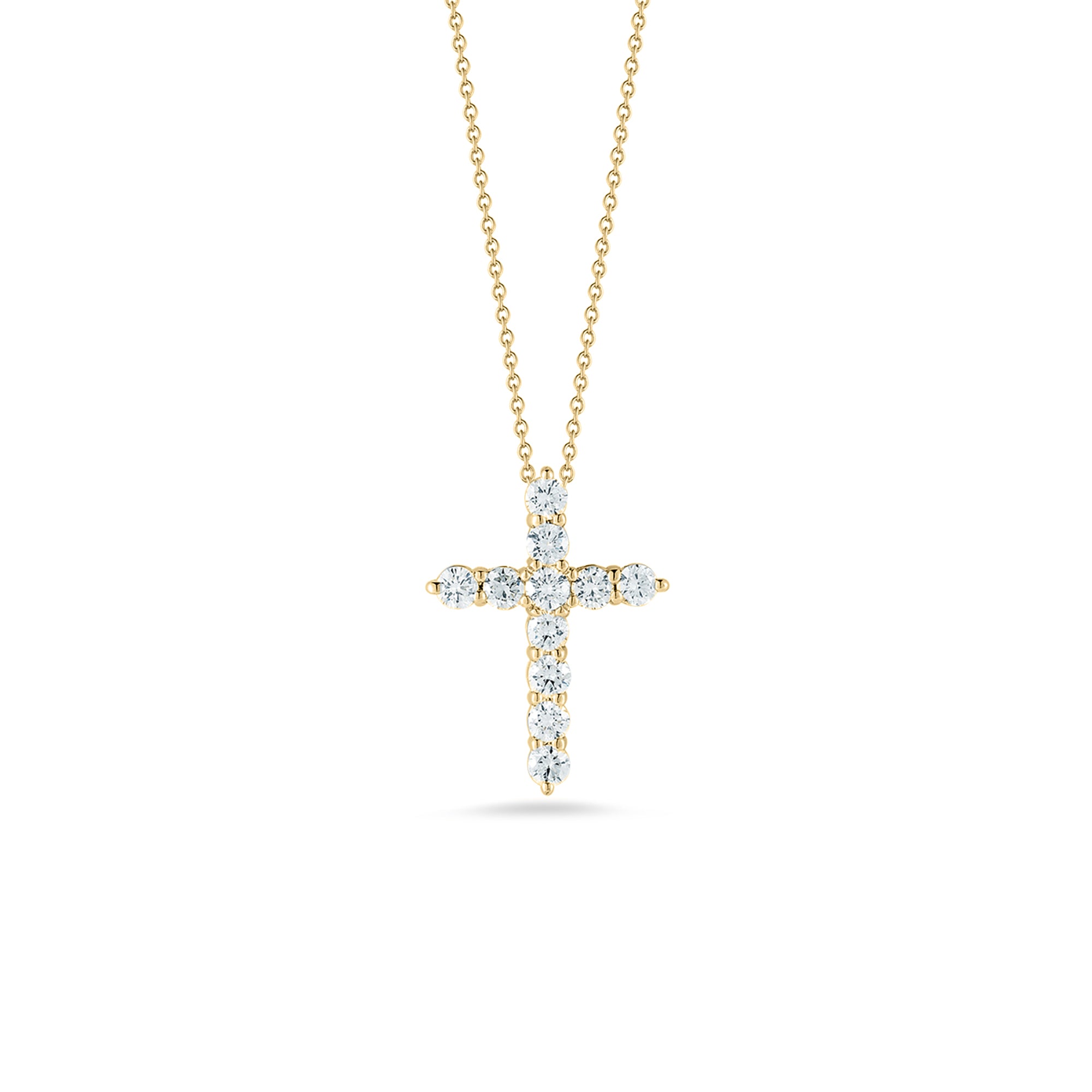 18K YELLOW GOLD TINY TREASURE DIAMOND CROSS NECKLACE