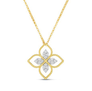 Explore the charm of Roberto Coin Diamond Gold Pendants, where luxurious diamonds are paired with the finest gold. These pendants offer a perfect balance of elegance and style, making them an excellent choice for anyone looking to elevate their jewelry game.