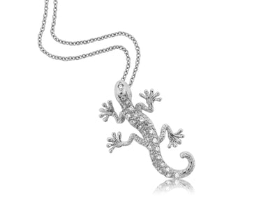 ROBERTO COIN 18K WHITE GOLD 0.11CT SI/G DIAMOND GECKO PENDANT FROM THE TINY TREASURES COLLECTION