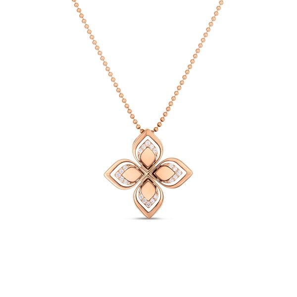 18K ROSE GOLD VENETIAN PRINCESS OPEN FRAME DIAMOND FLOWER NECKLACE