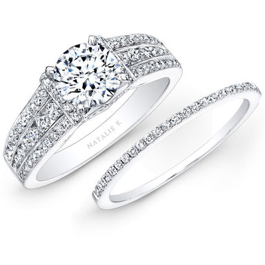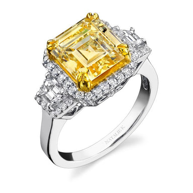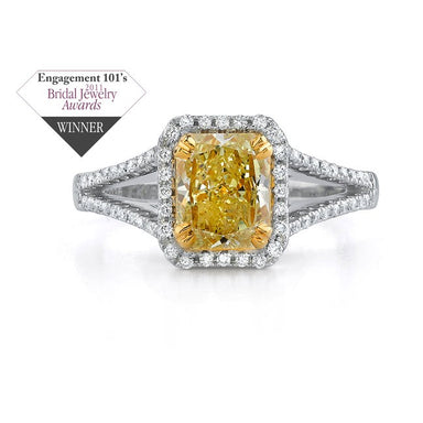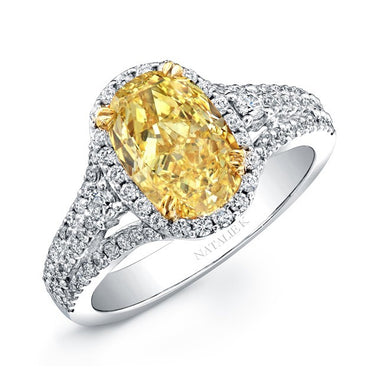 Natalie K 18k White and Yellow Gold Fancy Yellow Cushion Split Shank Diamond Ring (center stone sold separately)