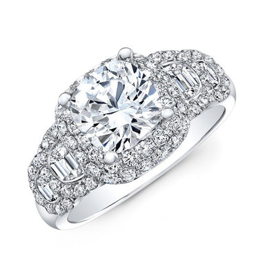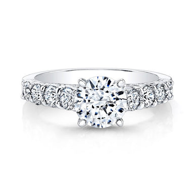 This glamorous diamond engagement semi mount features two rows of pave set brilliant round white diamonds that sit on an 18k white gold shank enhan...