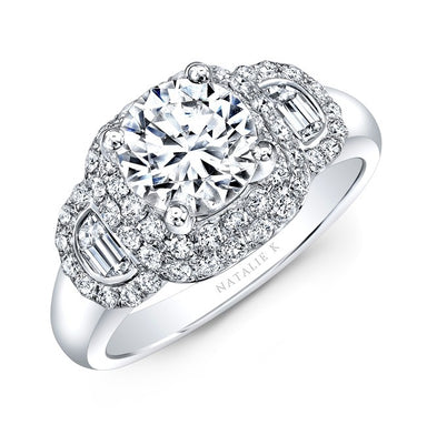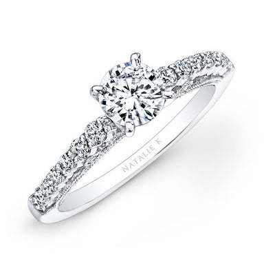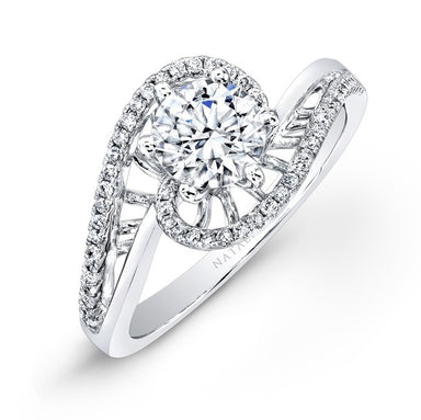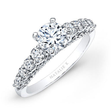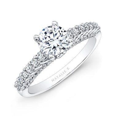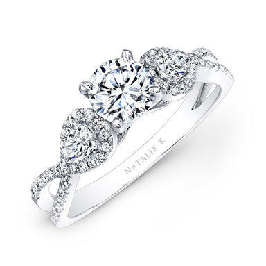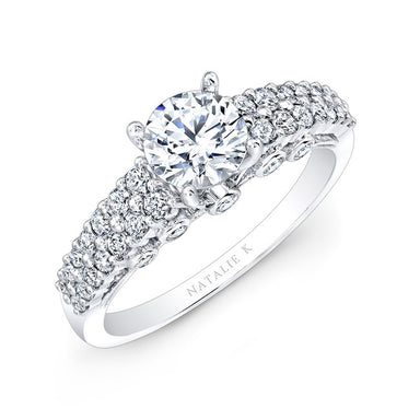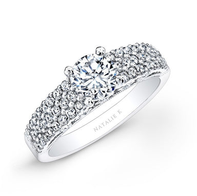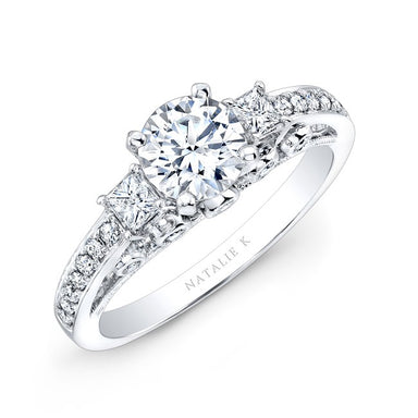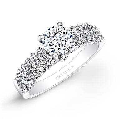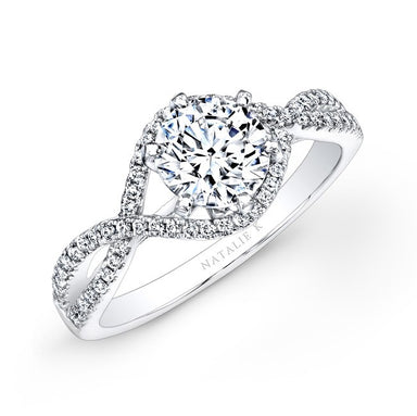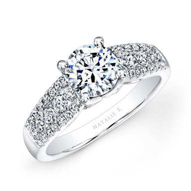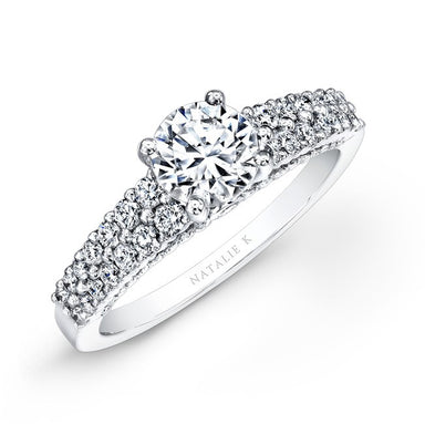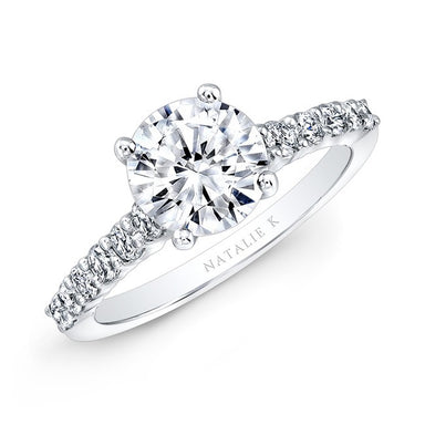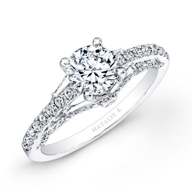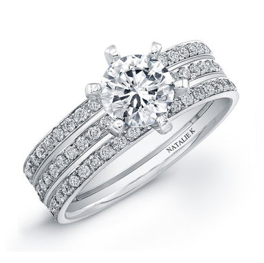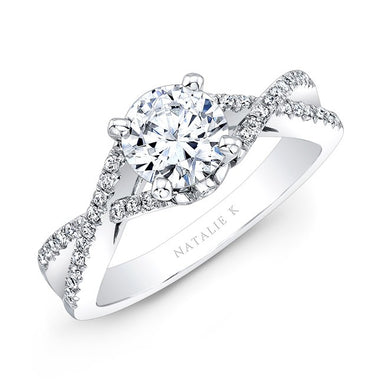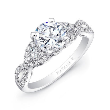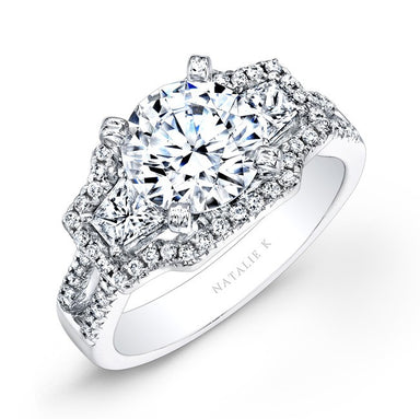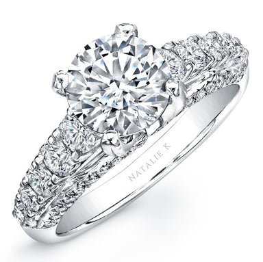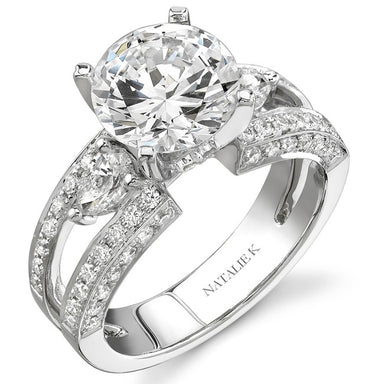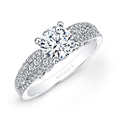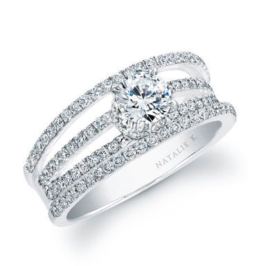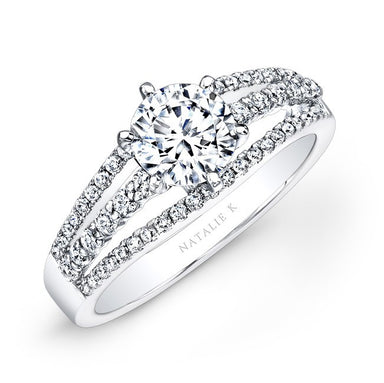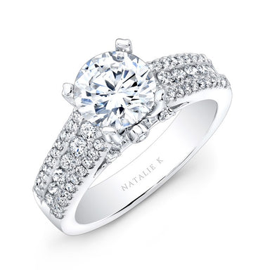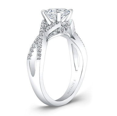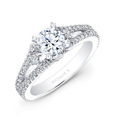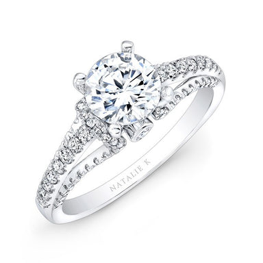 Natalie K 18k White Gold Split Shank Diamond Engagement Ring for a Princess Cut Center (center stone sold separately)
