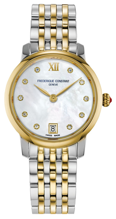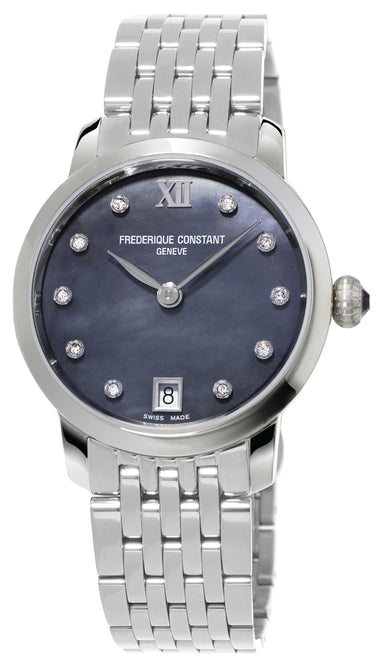 FREDERIQUE CONSTANT LADIES STAINLESS STEEL Silver-Tone Quartz CLASSICS Leather Strap