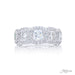 Stunning diamond wedding band featuring 5 radiant-cut diamonds surrounded by a micro-pave in a bezel setting. Handcrafted in pure platinum.