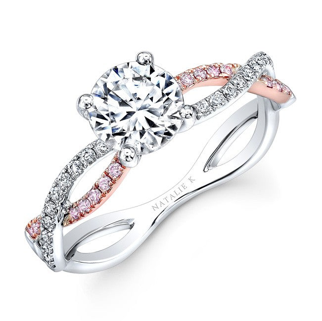 Natalie K 18k Rose and White Gold Pink and White Diamond SplitShank Diamond Engagement Ring (center stone sold separately)