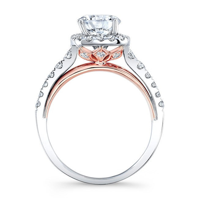 Natalie K 18k White and Rose Gold Pink and White Diamond Halo Engagement Ring (center stone sold separately)
