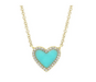 14K YELLOW GOLD TURQUOISE AND DIAMOND HEART NECKLACE